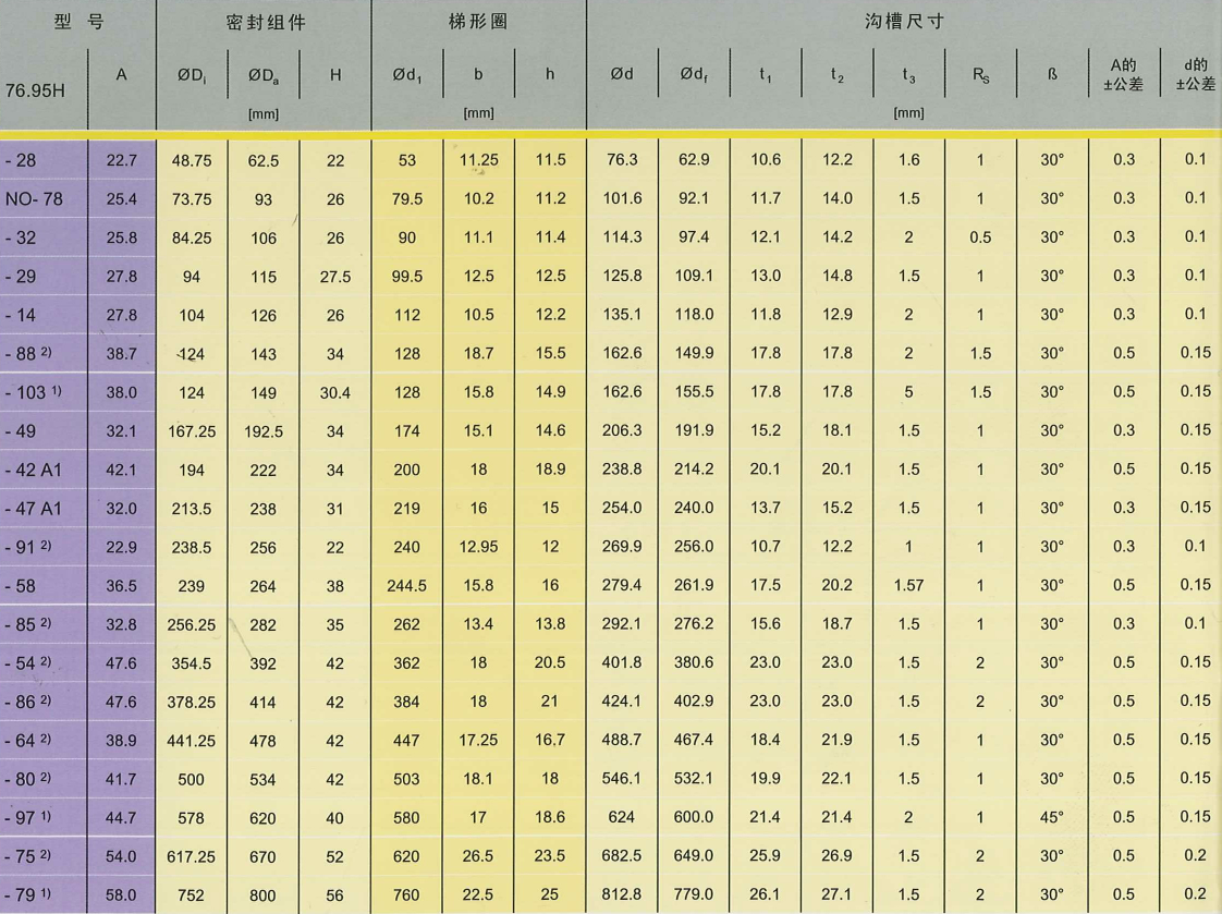 76.95H型相對(duì)于76.95型,是一個(gè)帶有支撐唇的浮動(dòng)油封,它在密封環(huán)上加工了凹槽,梯形圈上的凸槽嵌入密封環(huán)上的凹槽中,形成鎖合,它可以防止橡膠圈在惡劣工礦下產(chǎn)生軸向位移,以及金屬環(huán)和橡膠圈之間發(fā)生相對(duì)滑動(dòng)。