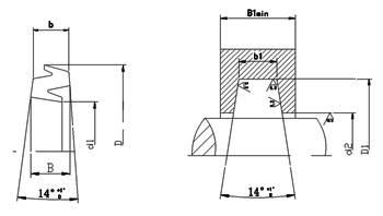 基本尺寸d1     基本尺寸D1 基本尺寸d2 基本尺寸b1 用于鋼B1min 用于鑄鐵B1min
